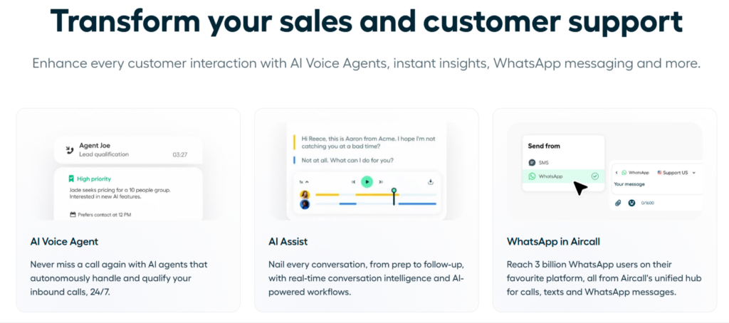 Aircall strengthens team alignment by centralising calls and insights. Its powerful integration ecosystem ensures calls are matched with customer data for better outcomes, while real‑time dashboards support coaching and optimisation.